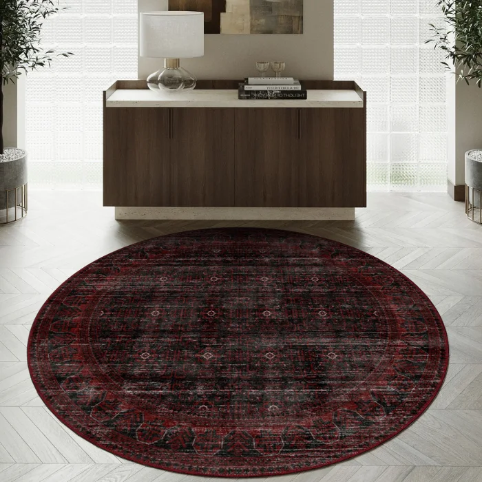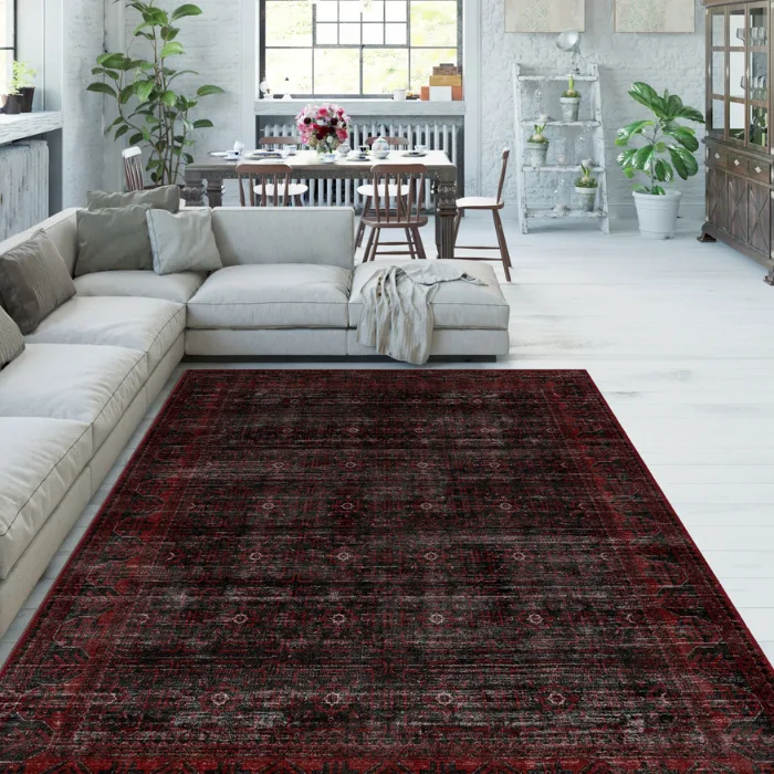 Anya Black Red Distressed Turkish Carpet