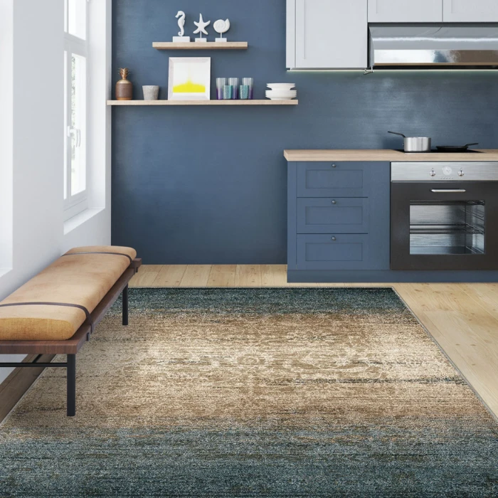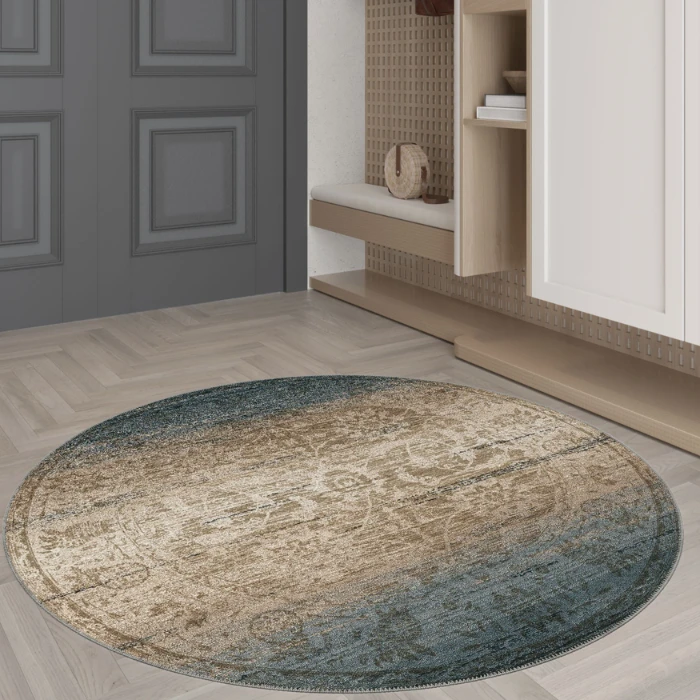 Eliana Teal Beige Damask Turkish Carpet